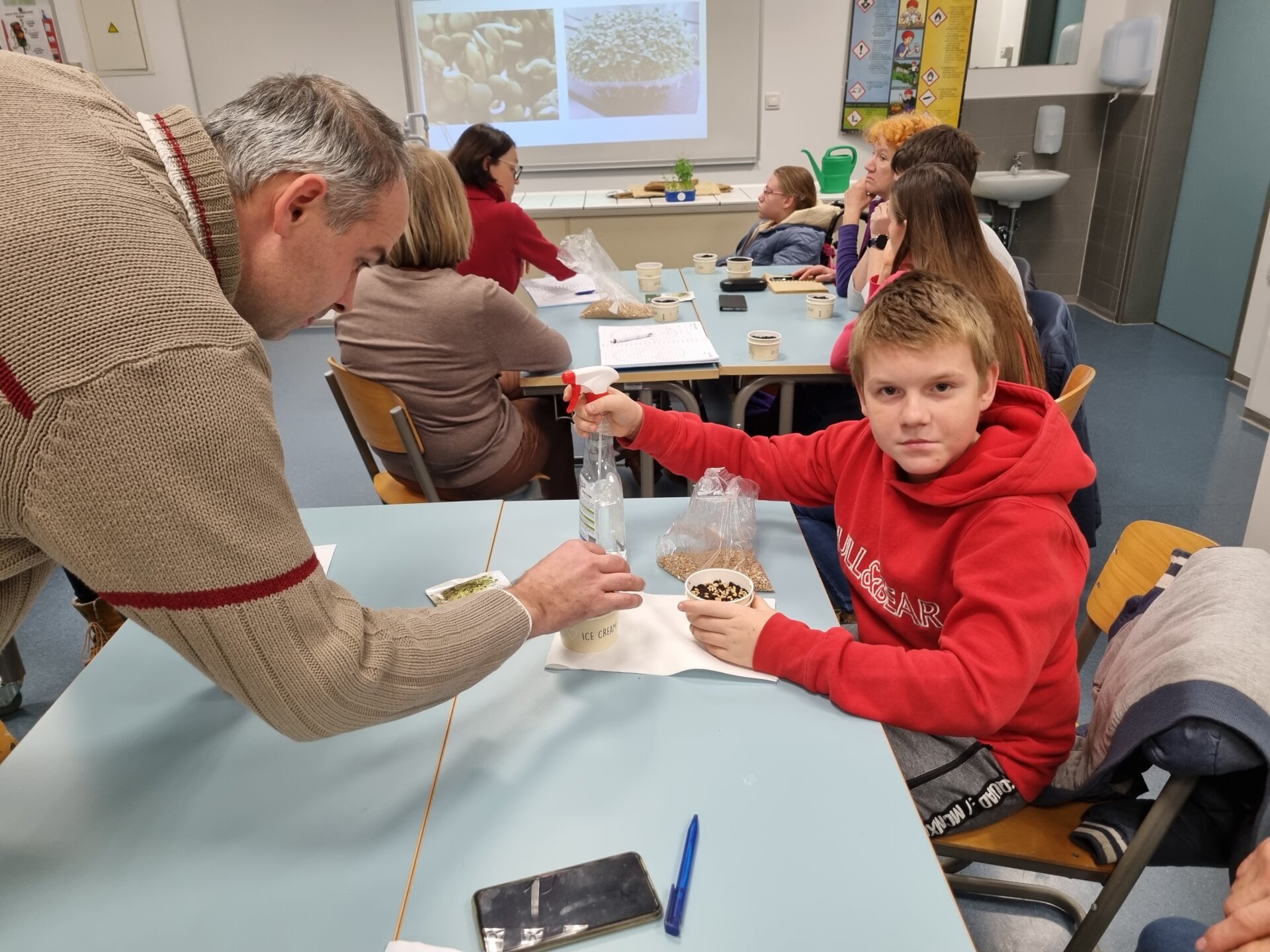 V okviru projekta Trajnostni podeželski vrt smo izvedli prvo delavnico na temo mikrozelenjave. Semena so posajena, čakamo, da vzklijejo, potem pa – vitaminske in mineralne pojedine! Hvala ge. MIŠI PUSENJAK in g. BOSTJANU KRISTANU za vse informacije in vodenje!
