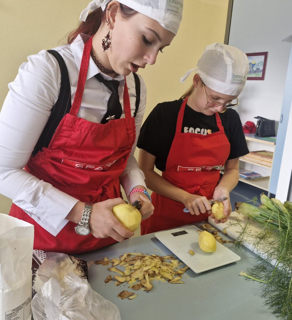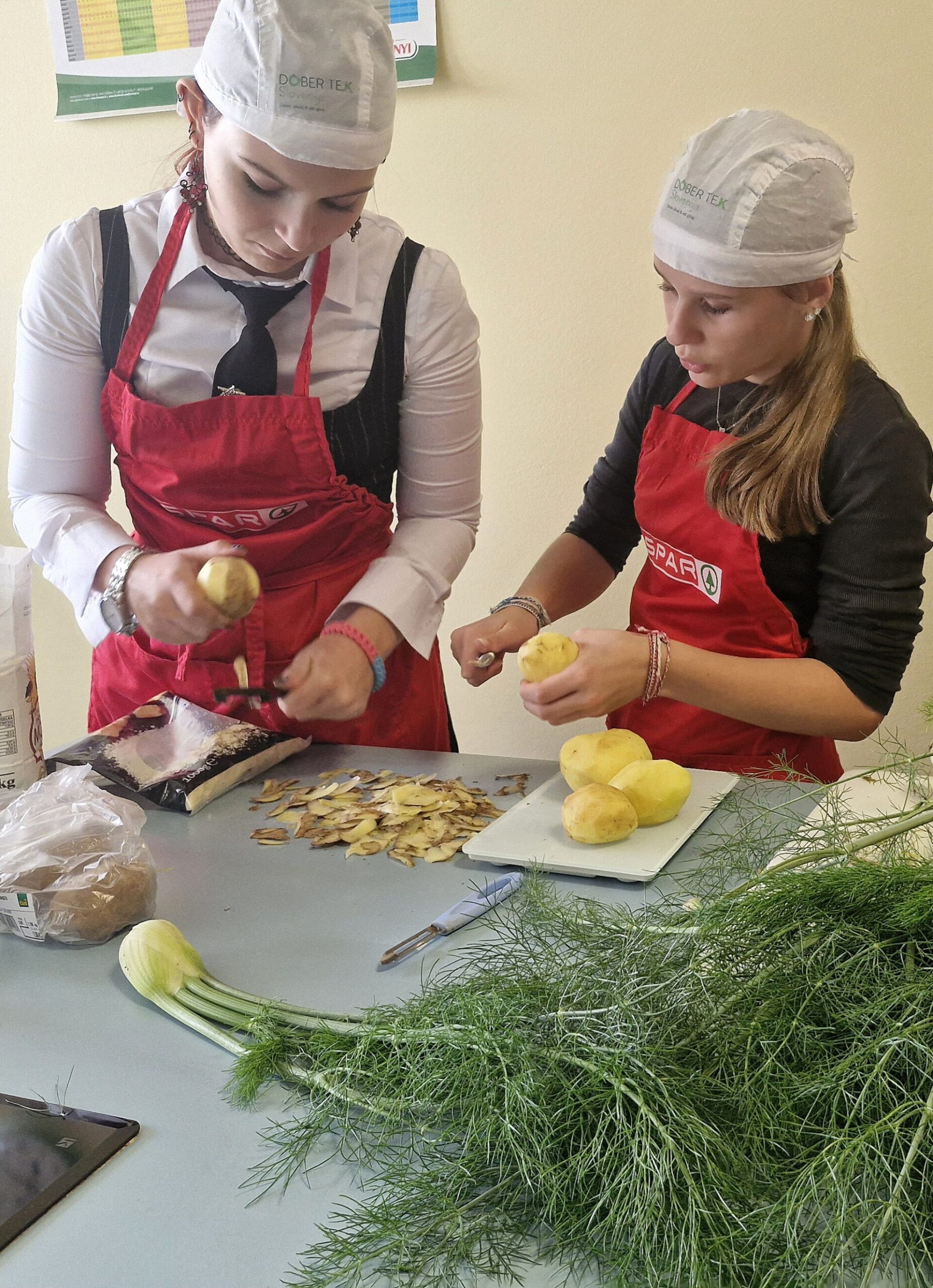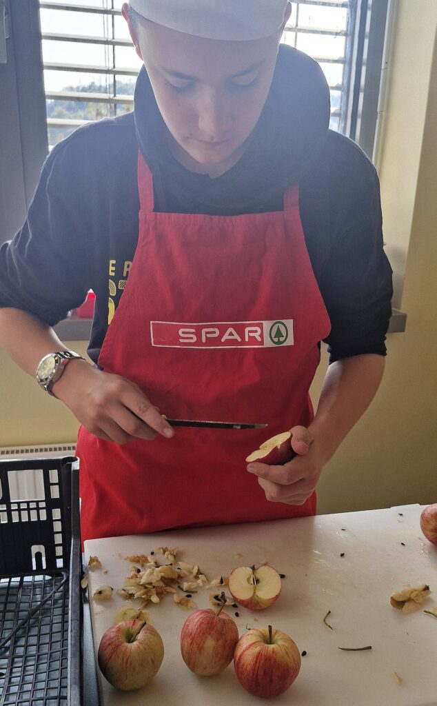 Projekt Kuhnapato spodbuja otroke in mlade, da spoznajo pomen zdrave, lokalne in tradicionalne prehrane. Učenci pripravljajo jedi iz lokalnih in sezonskih sestavin, ob tem pa spoznavajo bogato slovensko kulinarično dediščino. Skozi kuhanje se učijo o trajnostnem načinu življenja, spoštovanju hrane ter povezanosti med človekom, naravo in skupnostjo. Letos so na prvi kulinarični delavnici sodelovali učenci 9. razredov, ki obiskujejo obvezni izbirni predmet Sodobna priprava hrane. Uporabili so sezonsko sestavino kostanj ter sestavino iz šolskega vrta koromač. Pripravili so pečena jabolka polnjena s kostanjevo kremo ter gratiniran koromač in krompir.