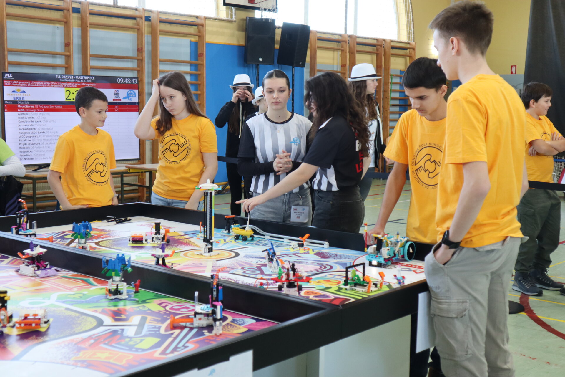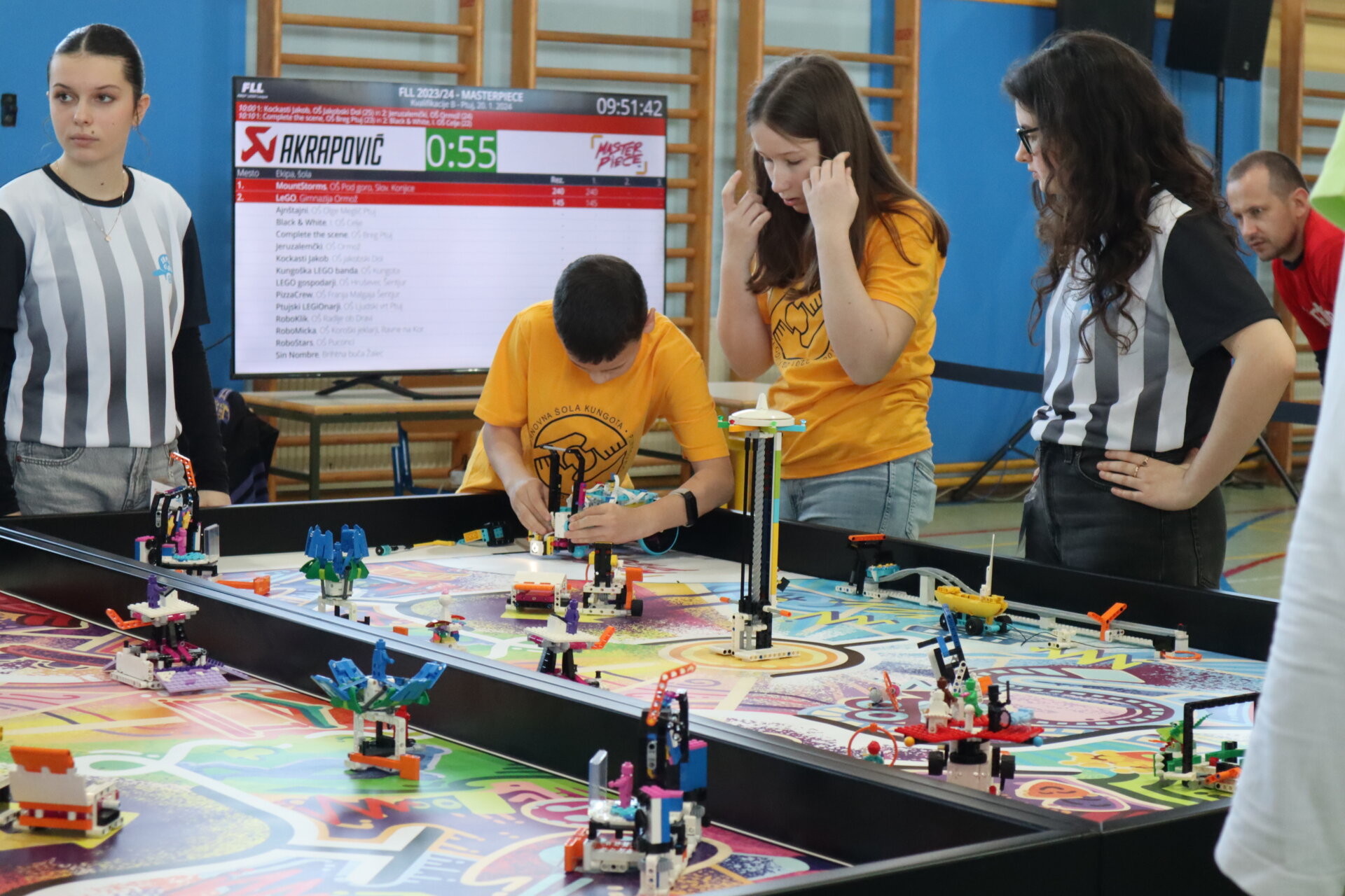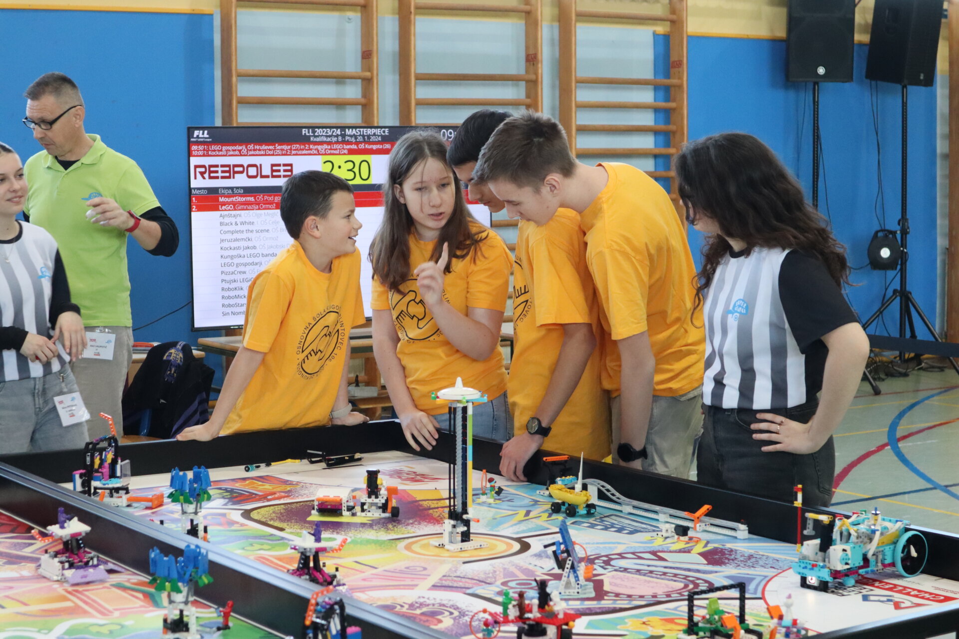 Kaj pa sobotni turnir? Na turnir smo se odpravili vsak s svojim vprašajem in skrbmi v nahrbtniku, saj letos delamo prve korake v lego svetu. Kljub temu pa smo na Ptuj prinesli veliko dobre volje in predvsem motivacije za tekmo. V vsakem krogu tekme je bilo kaj, kar nas je pozitivno presenetilo in tudi kaj, kar nas je naučilo nekaj novega. Ker pa to ni le tekmovanje z roboti, ampak morajo ekipe pokazati še kaj, smo se udeležili tudi prav posebnega intervjuja, kjer smo sodnikom v rdečem predstavili inovacijski projekt, ki smo ga naumili medtem, ko smo ob petkih vneto programirali misije, skakali čez ovire in reševali probleme. Sodnike pa je tudi zanimalo kakšni smo kot ekipa, kako se spoprijemamo s problemi, na katere naletimo, podrobneje pa so želeli spoznati tudi našega Trminatorja. Kdo pa ga ne bi, če je pa tako prijetno trmast?