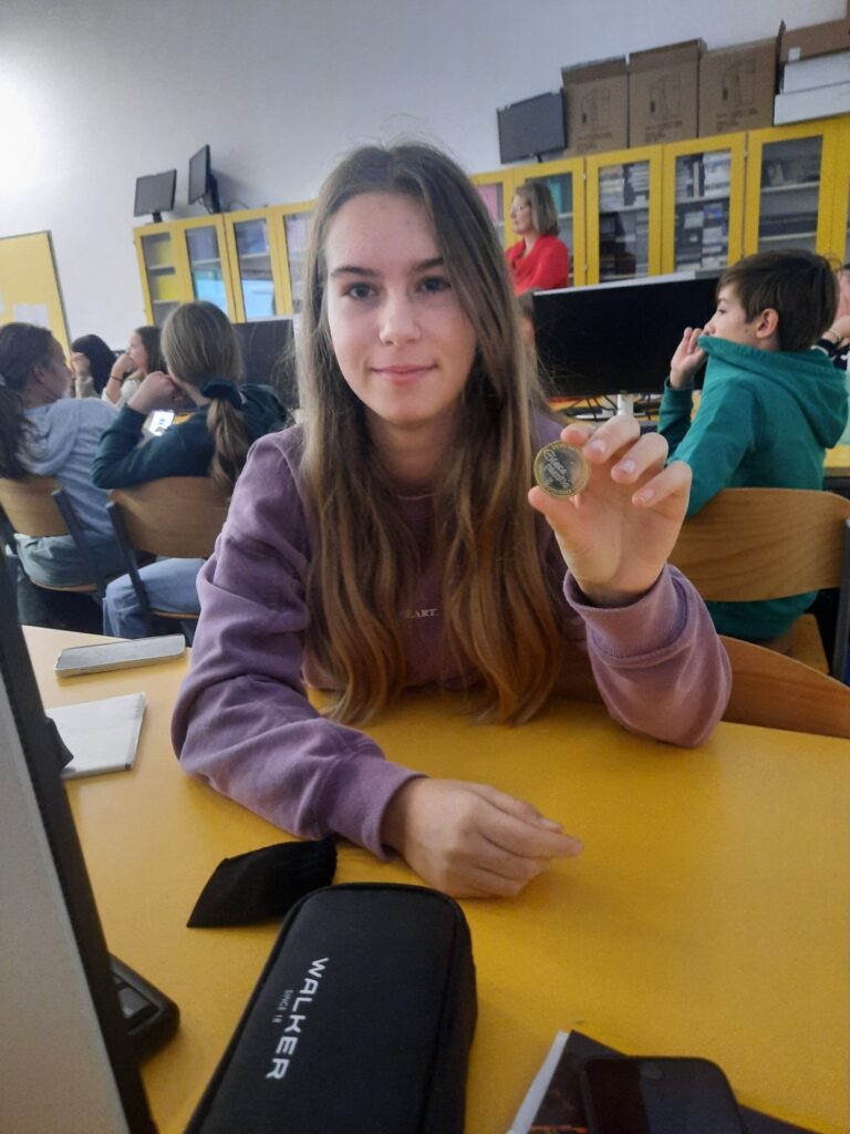 Prva delavnica se je odvijala v okviru teme BANČNIŠTVO, predstavljala pa jo je predstavnica Banke Slovenije. Učenci so si ogledali film in sodelovali v kvizu. Zmagovalka z največjim številom pravilnih odgovorov je postala Lara Vuica iz 7.a, ki je za nagrado dobila kovanec za 3 evre.