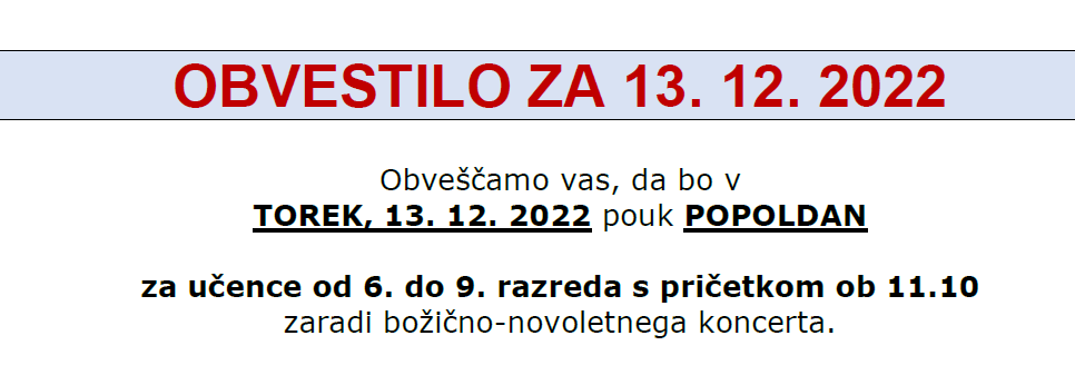 OBVESTILO ZA 13. 12. 2022 |