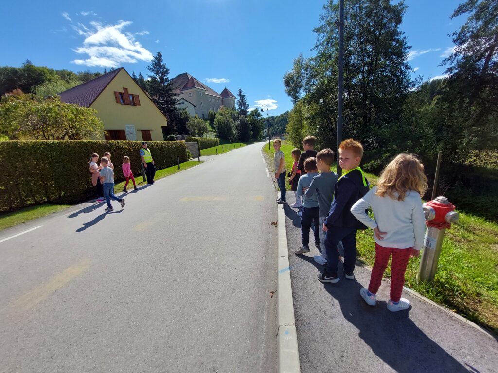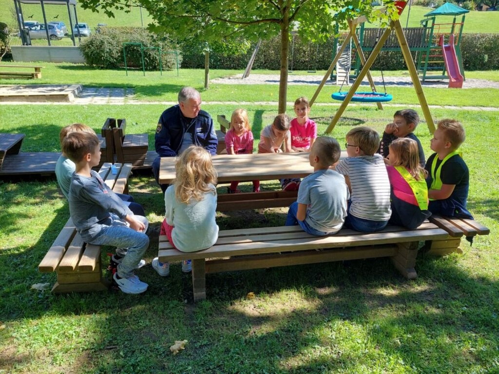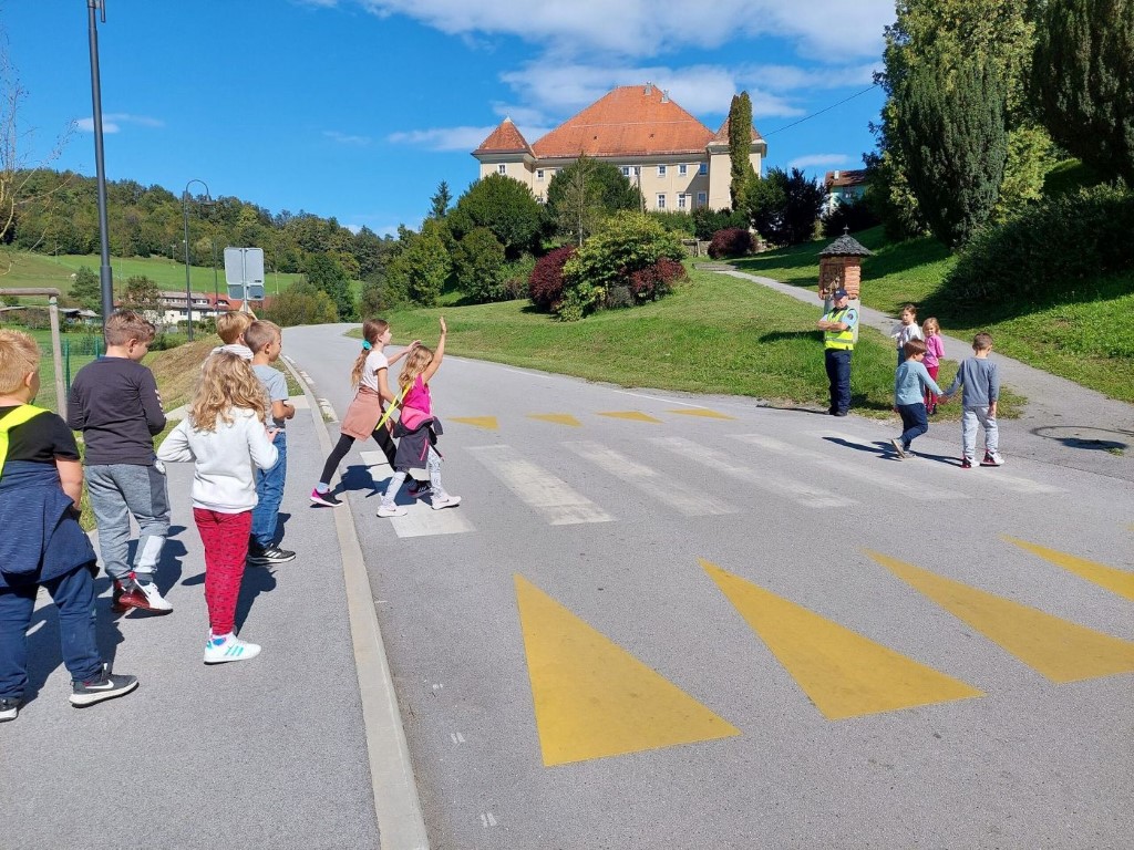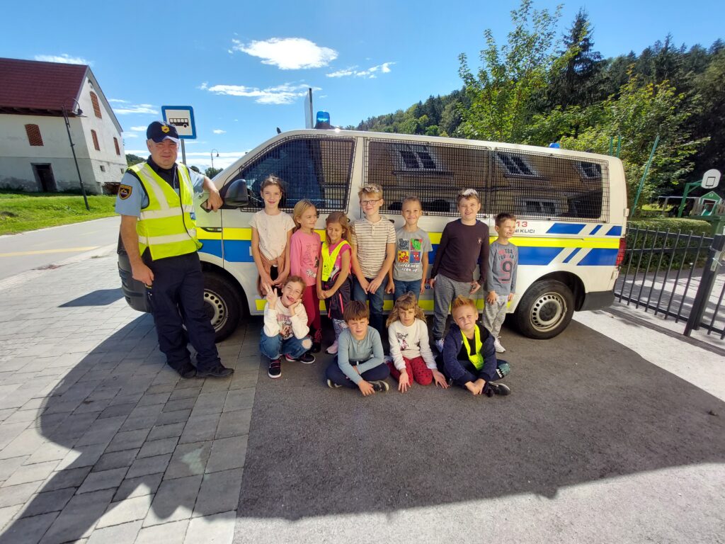 V torek, 20. 9. 2022 je najmlajše učence PŠ Svečina obiskal policist g. Bernard Vesenjak, z namenom, da otroke pouči o varnosti v prometu. Najprej smo skupaj obnovili svoje znanje o prometu, nato pa smo odšli na sprehod po bližnji okolici. Opazovali in opisovali smo prometne znake, ki smo jih videli ob cesti ter se naučili pravilno in varno prečkati cesto. Policist je učence opozoril na nevarnosti in pasti na cesti, opomnil pa jih je tudi na pomen vidnosti v prometu. Na parkirišču pred šolo je učencem razkazal še policijsko vozilo.