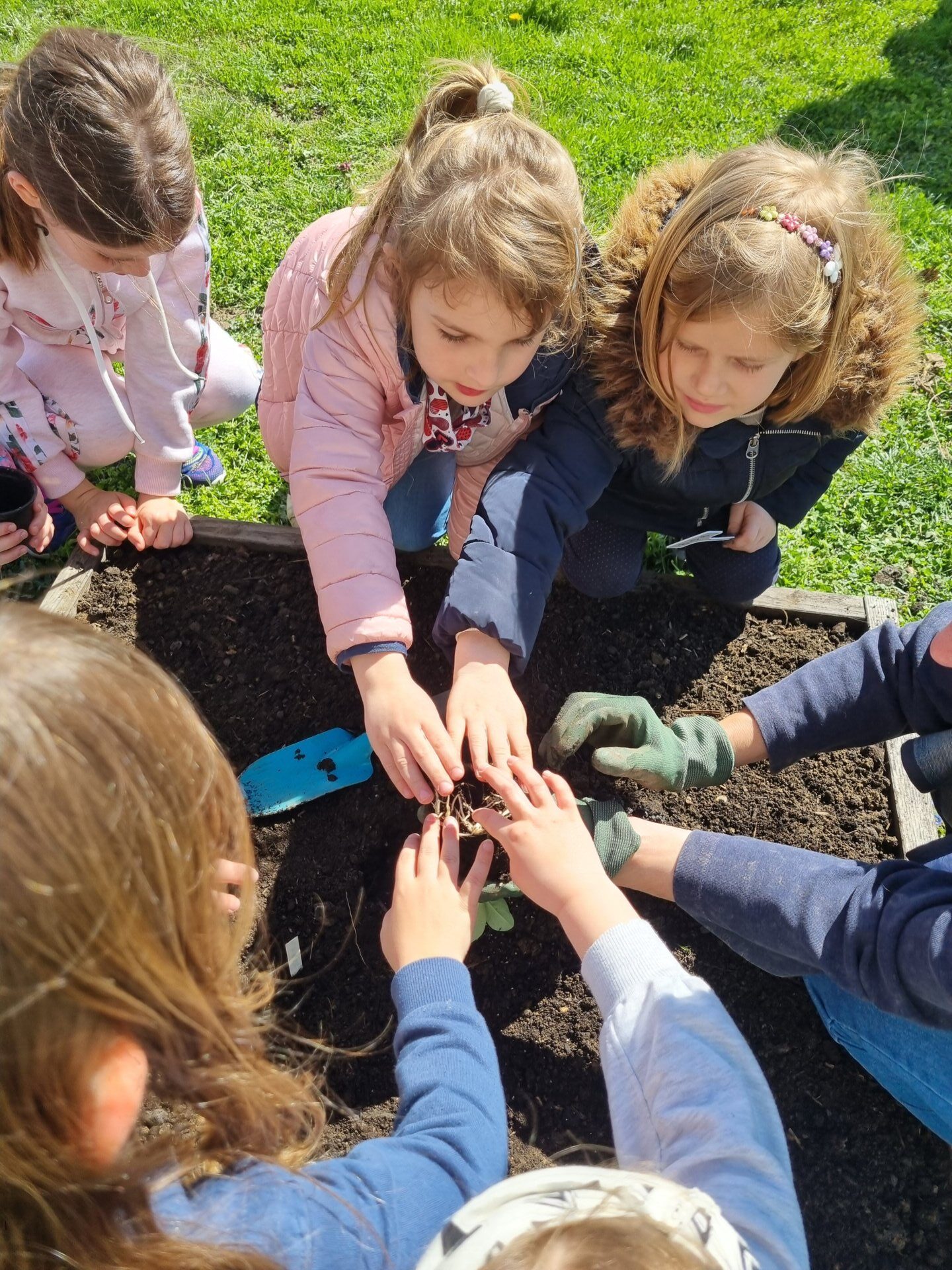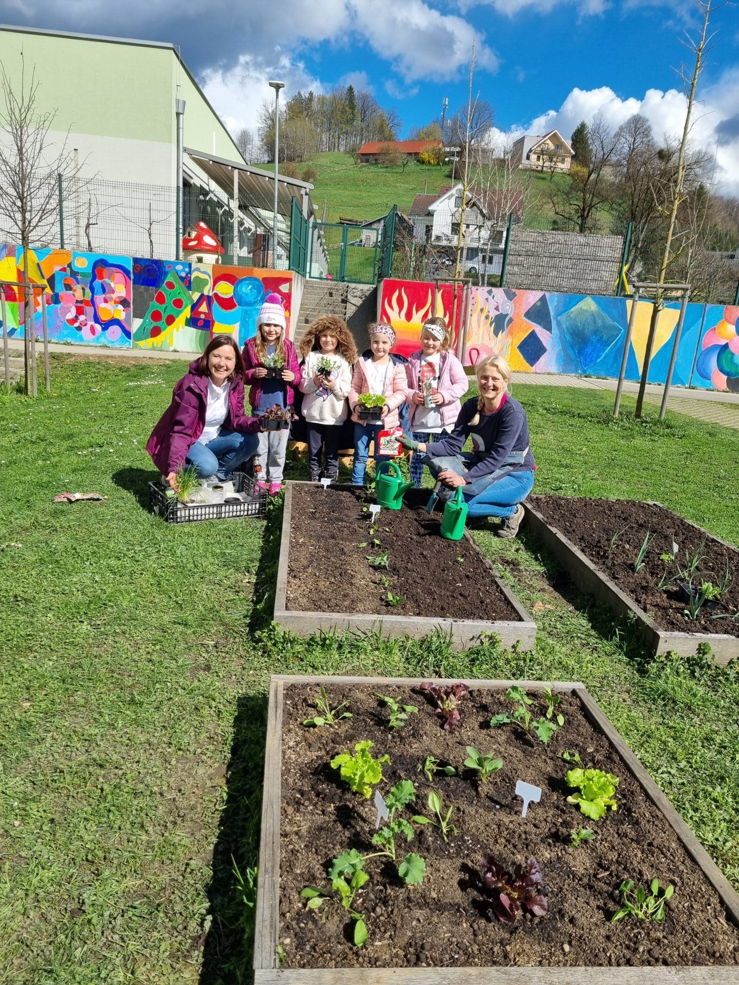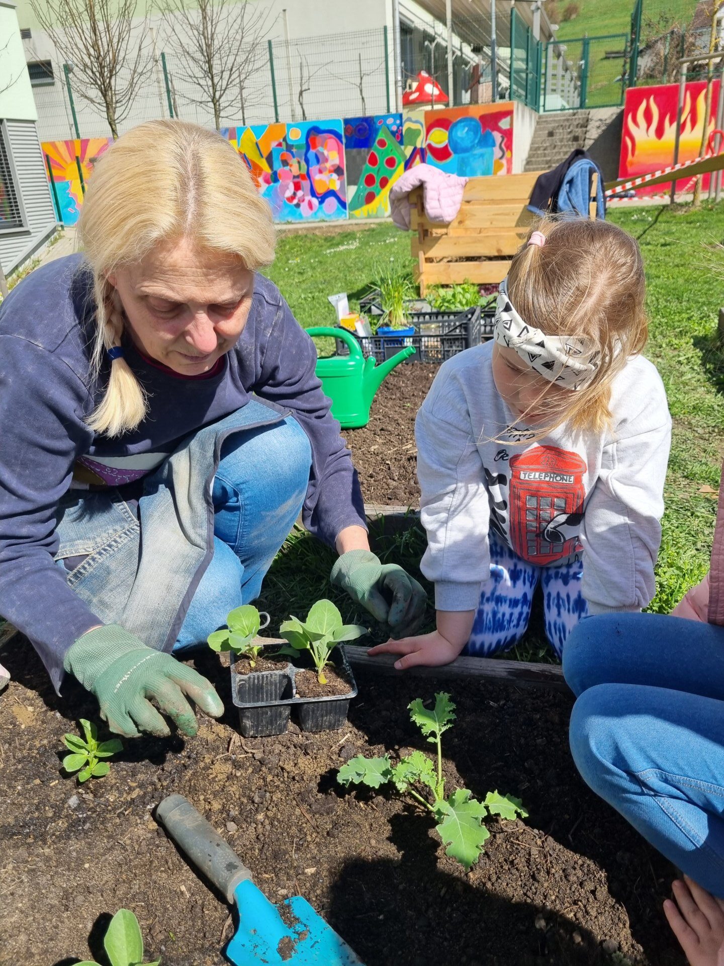 smo posejali. Le da bo obrodilo in da se bodo ti mladi nadobudni »vrtnarji » spominjali prvih korakov k samooskrbi in širili znanje naprej. Naj le raste, mi bomo pridno zalivali. Zahvala za delitev znanja in sadike ga. Alenki Šoštarič in društvu za celostno samooskrbo.