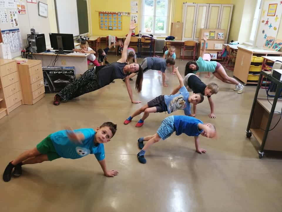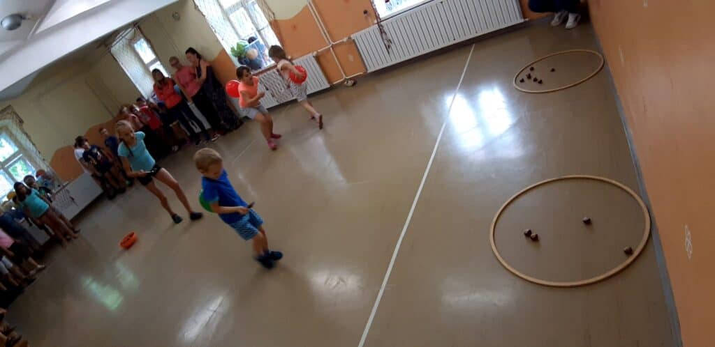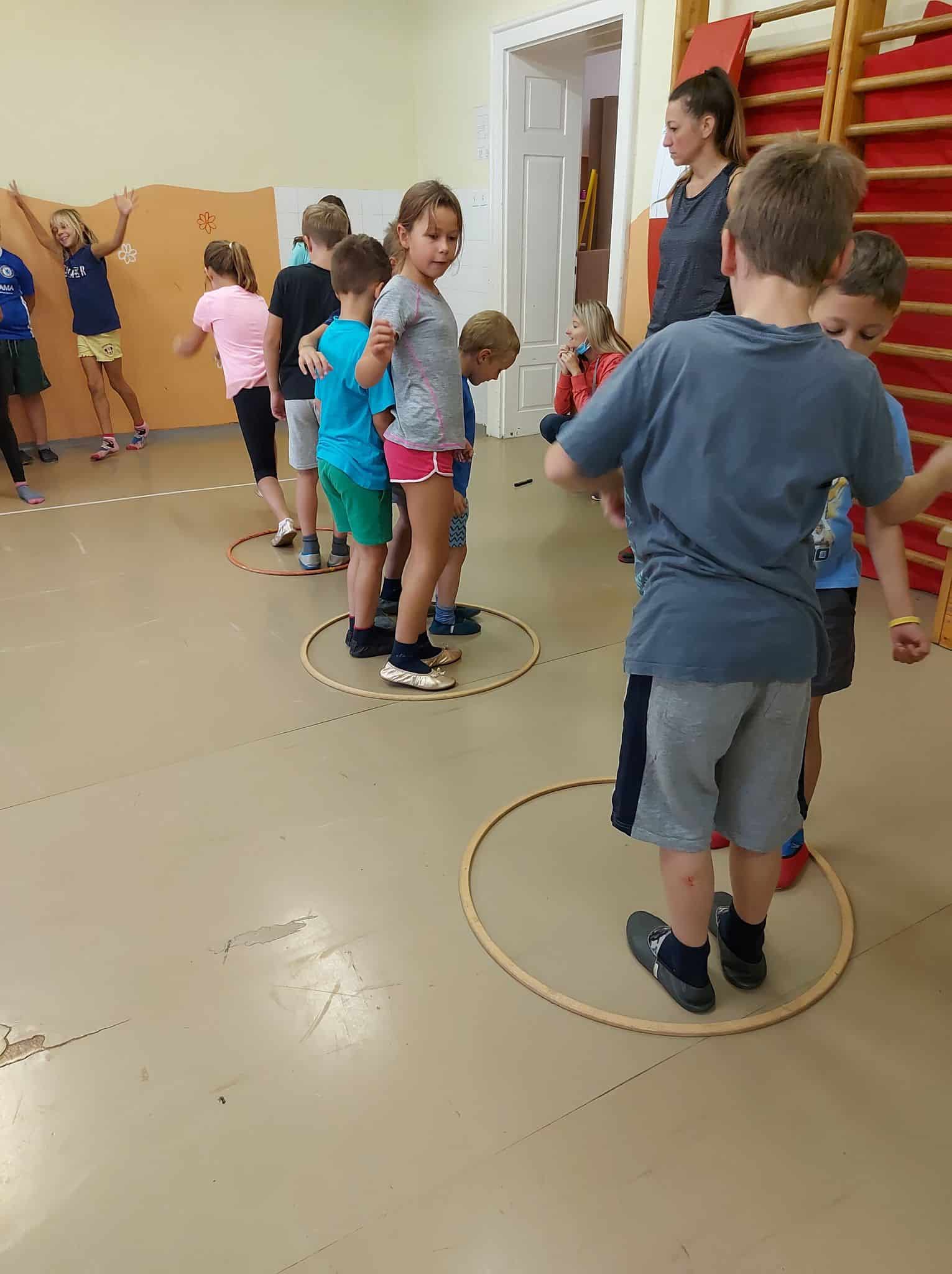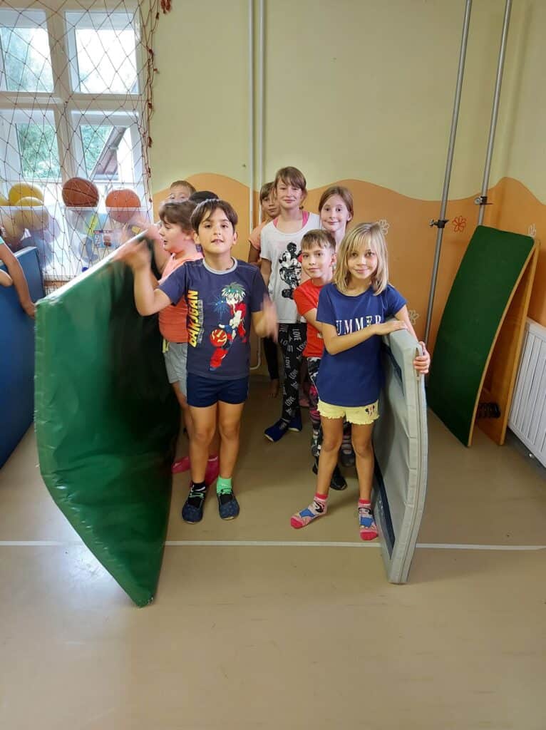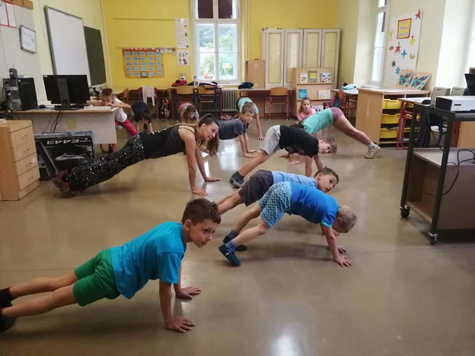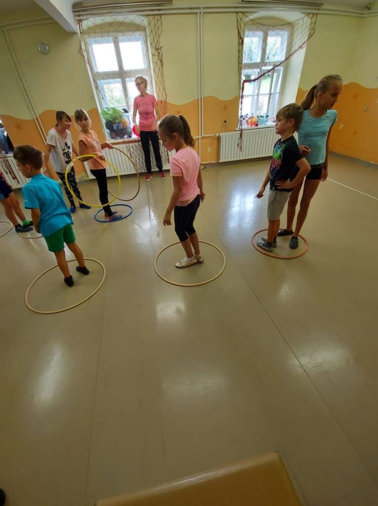 V sklopu tedna otroka smo v ponedeljek, 5.10.2020 izvedli športni dan za učence od 1.-5.r. Ker nam vreme ni bilo naklonjeno, smo se najprej v učilnicah pošteno ogreli z zumbo ter nadaljevali z zahtevnejšimi vajami za moč, koordinacijo, ravnotežje ter se na koncu umirili z raztezanjem. Po malici je sledil glavni del, športne igre. Učence smo razdelili v dve skupini, ki sta se v telovadnici pomerili v različnih športnih, taktičnih, spretnostnih in hitrostnih nalogah. S čolni smo potovali čez morje, nabirali diamante, se prebijali skozi labirint, skakali čez kamne med krokodili in še marsikaj, predvsem pa smo se naučili, kako pomembno je sodelovanje skupine. Dan je bil poln smeha in zabave, pa tudi zdrave tekmovalnosti.