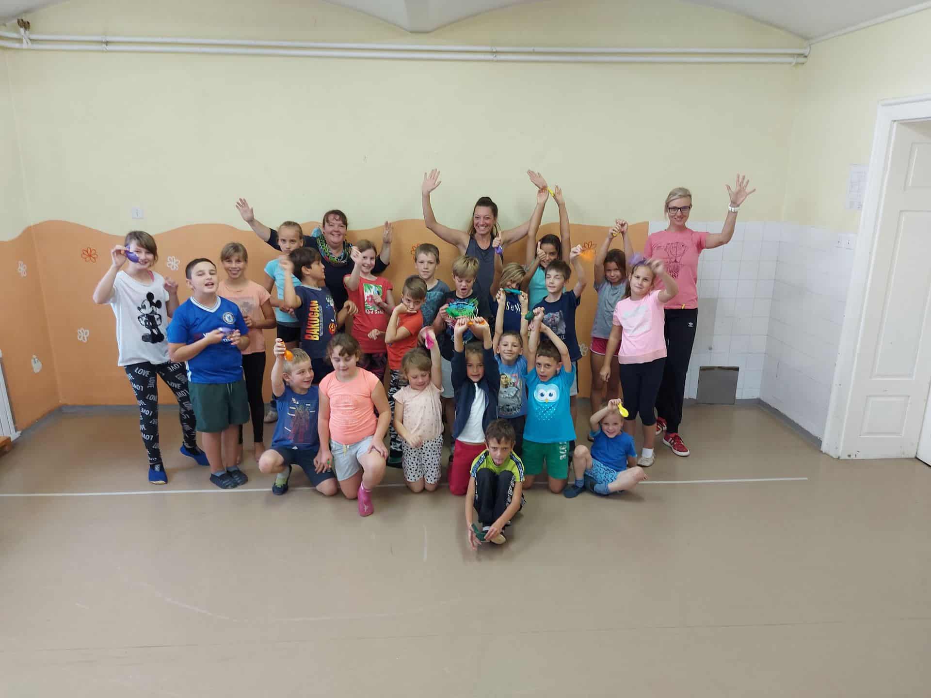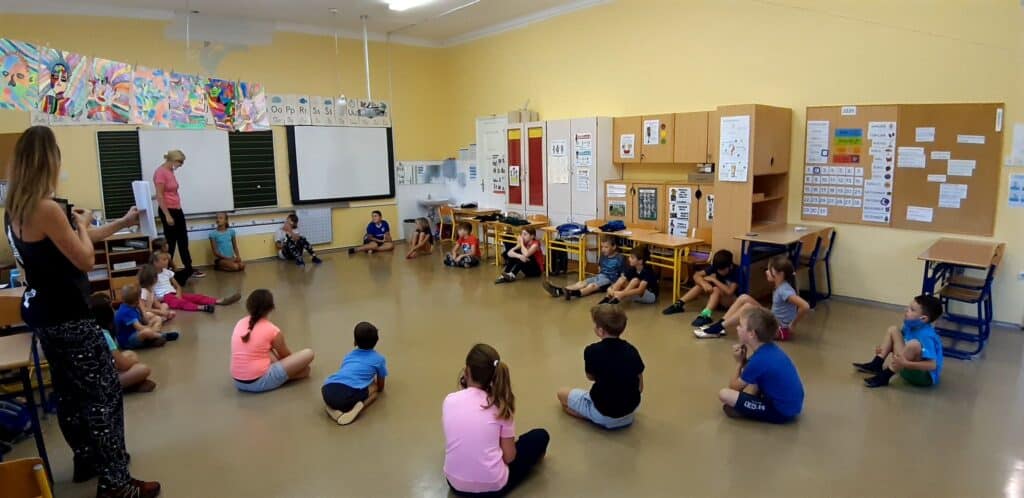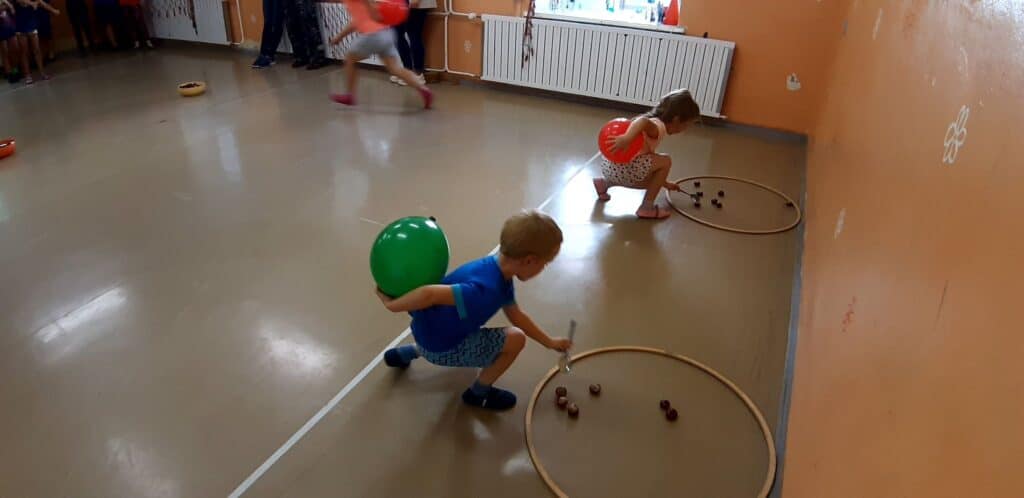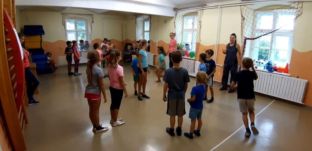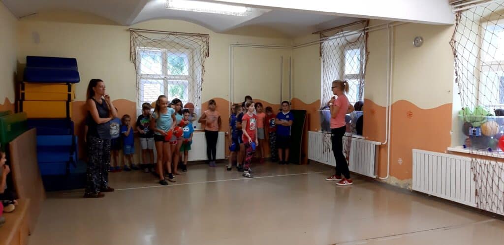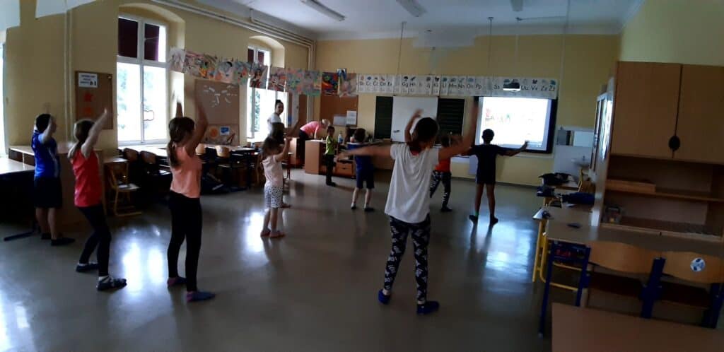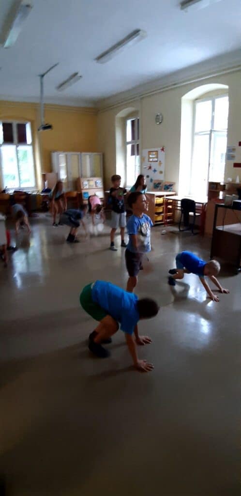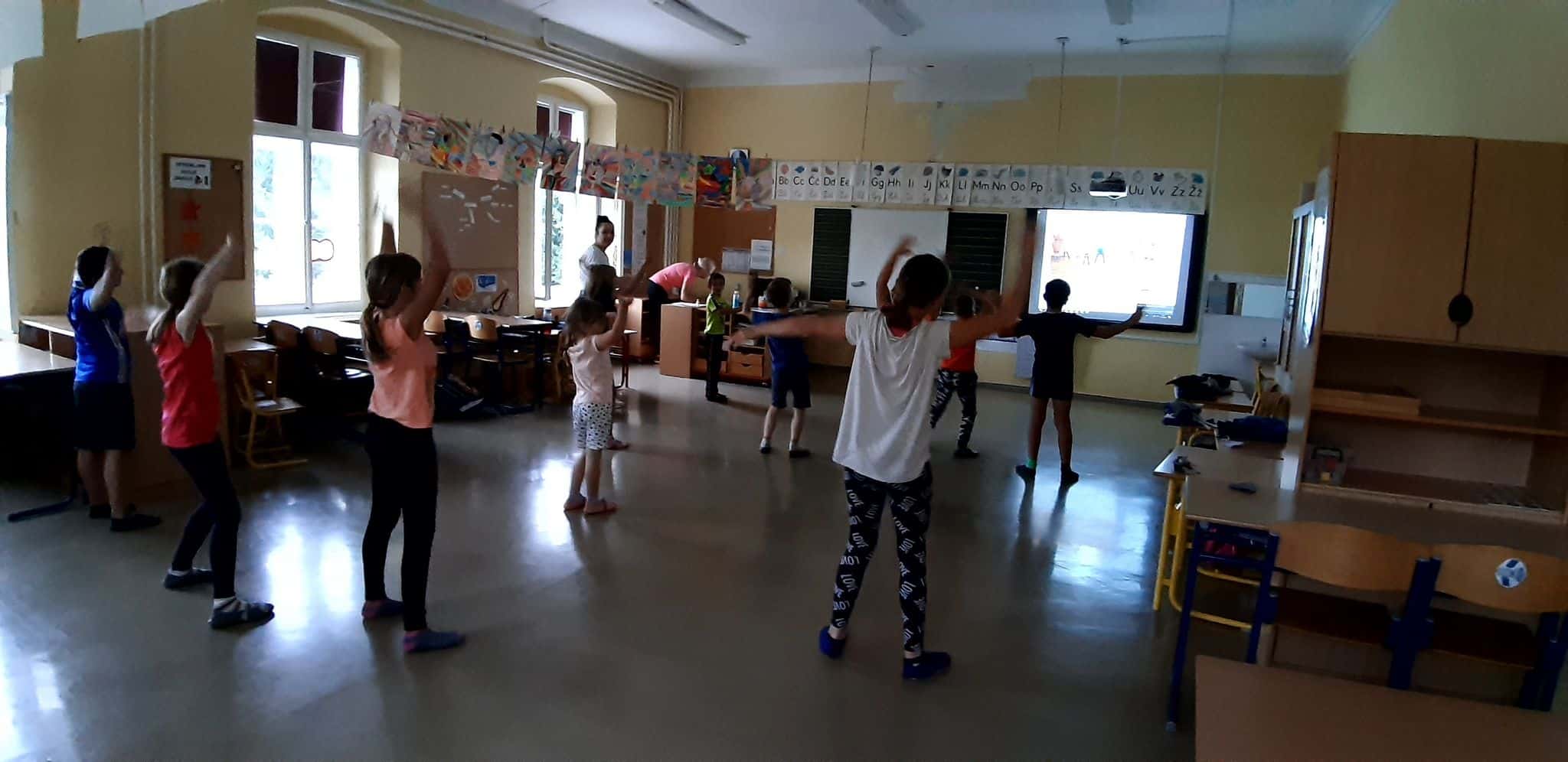 V sklopu tedna otroka smo v ponedeljek, 5.10.2020 izvedli športni dan za učence od 1.-5.r. Ker nam vreme ni bilo naklonjeno, smo se najprej v učilnicah pošteno ogreli z zumbo ter nadaljevali z zahtevnejšimi vajami za moč, koordinacijo, ravnotežje ter se na koncu umirili z raztezanjem. Po malici je sledil glavni del, športne igre. Učence smo razdelili v dve skupini, ki sta se v telovadnici pomerili v različnih športnih, taktičnih, spretnostnih in hitrostnih nalogah. S čolni smo potovali čez morje, nabirali diamante, se prebijali skozi labirint, skakali čez kamne med krokodili in še marsikaj, predvsem pa smo se naučili, kako pomembno je sodelovanje skupine. Dan je bil poln smeha in zabave, pa tudi zdrave tekmovalnosti.