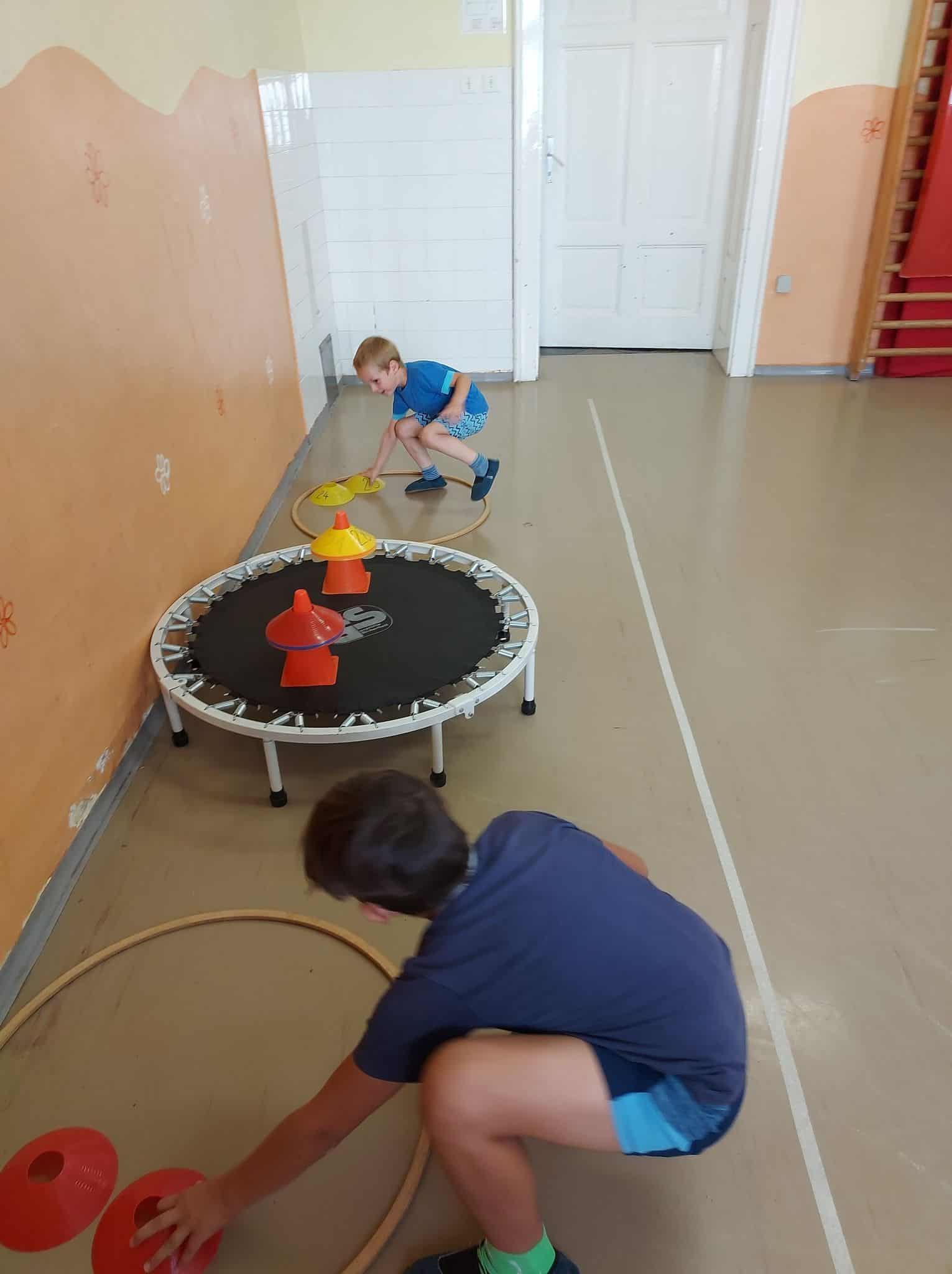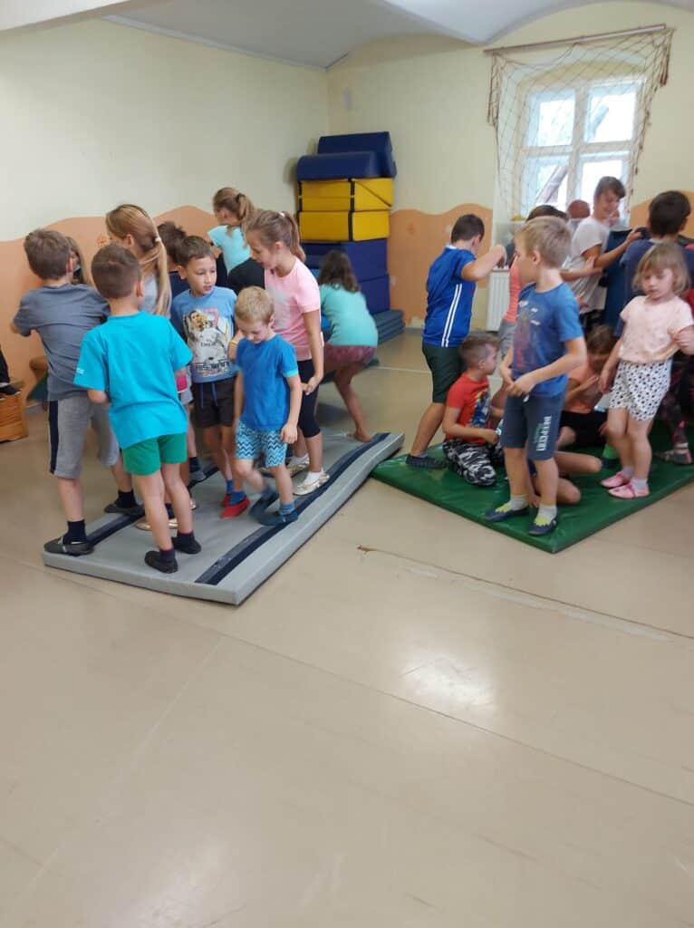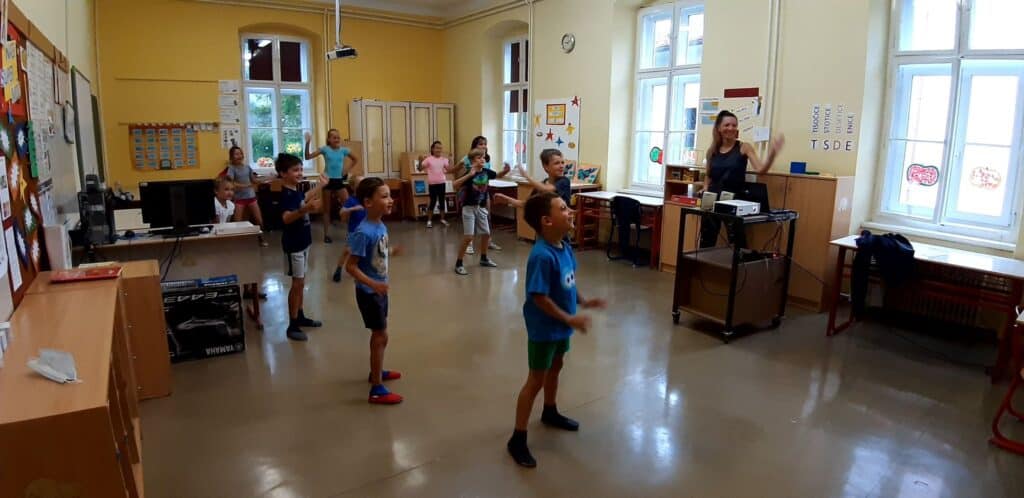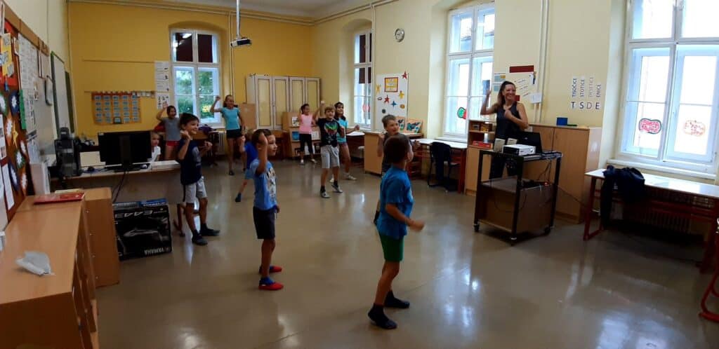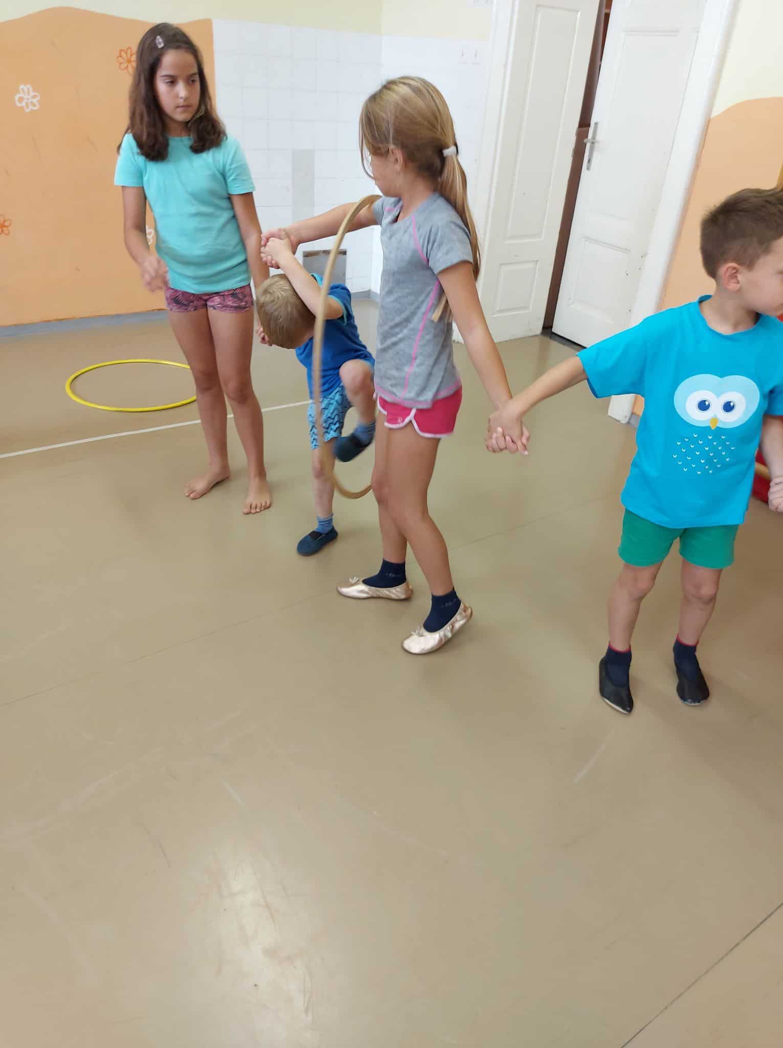 V sklopu tedna otroka smo v ponedeljek, 5.10.2020 izvedli športni dan za učence od 1.-5.r. Ker nam vreme ni bilo naklonjeno, smo se najprej v učilnicah pošteno ogreli z zumbo ter nadaljevali z zahtevnejšimi vajami za moč, koordinacijo, ravnotežje ter se na koncu umirili z raztezanjem. Po malici je sledil glavni del, športne igre. Učence smo razdelili v dve skupini, ki sta se v telovadnici pomerili v različnih športnih, taktičnih, spretnostnih in hitrostnih nalogah. S čolni smo potovali čez morje, nabirali diamante, se prebijali skozi labirint, skakali čez kamne med krokodili in še marsikaj, predvsem pa smo se naučili, kako pomembno je sodelovanje skupine. Dan je bil poln smeha in zabave, pa tudi zdrave tekmovalnosti.