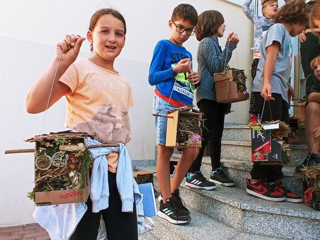 Na dan izvedbe so se učenci najprej po razredih z razredničarkami pogovarjali ob pomoči videoposnetka in slikovnega materiala ter spoznali veliko zanimivosti o žuželkah in o tem zakaj je potrebno, da jim pomagamo in kako lahko to naredimo.