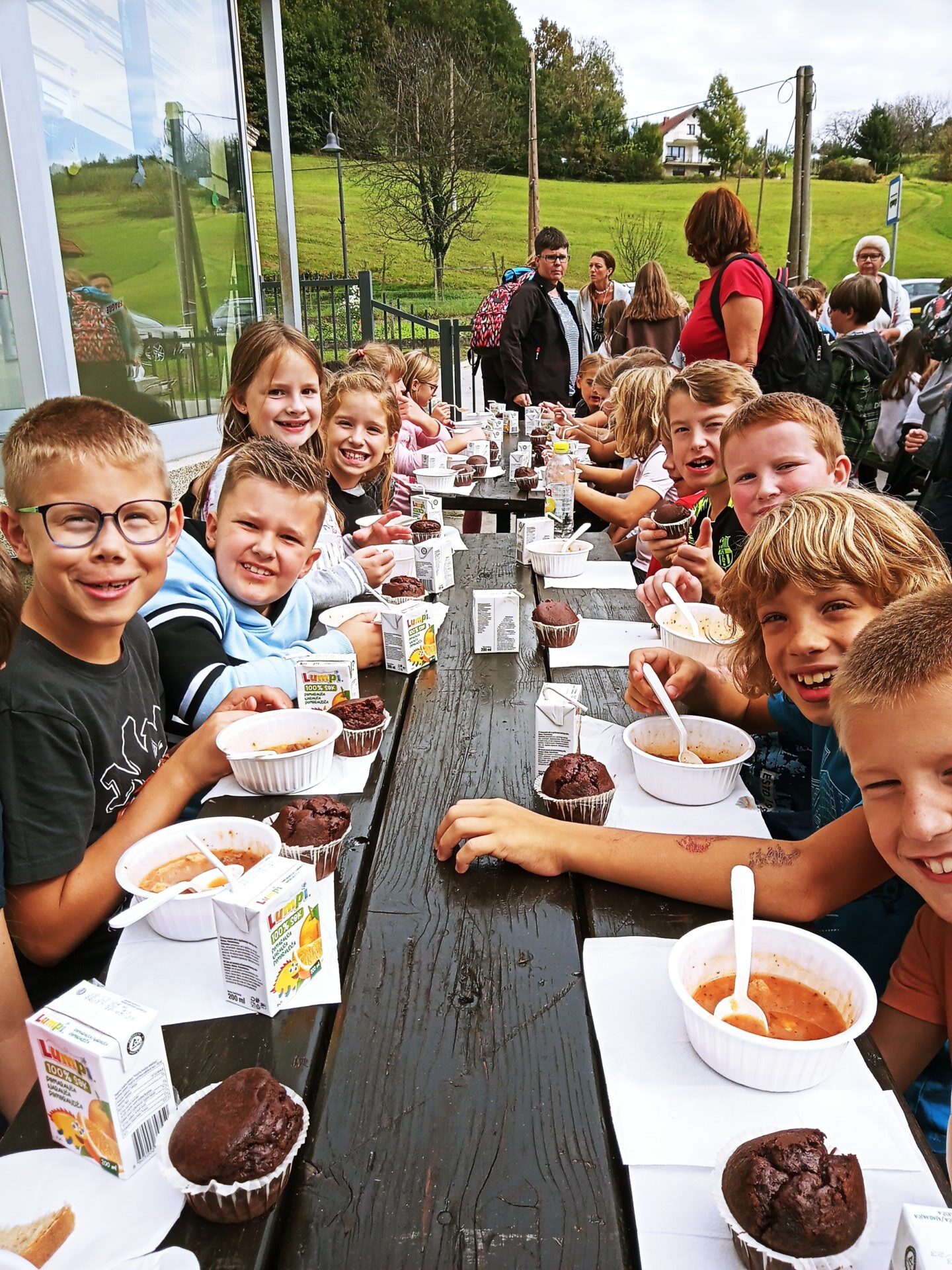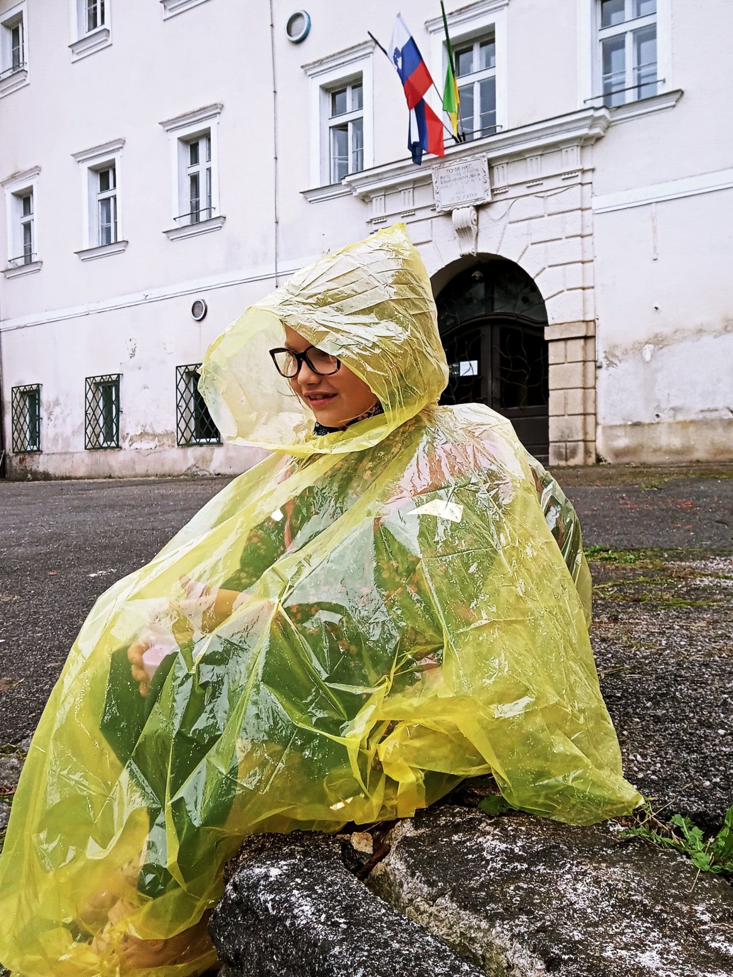 Vso pot smo se s strahom ozirali v nebo, ki je grozilo z gotovostjo napovedanim dežjem. Pa nam je bilo nebo naklonjeno. Šele zadnjih nekaj 100 metrov so si otroci dovolili malce veselja in zabave z odpiranjem dežnikov in razpiranjem palerin 🙂