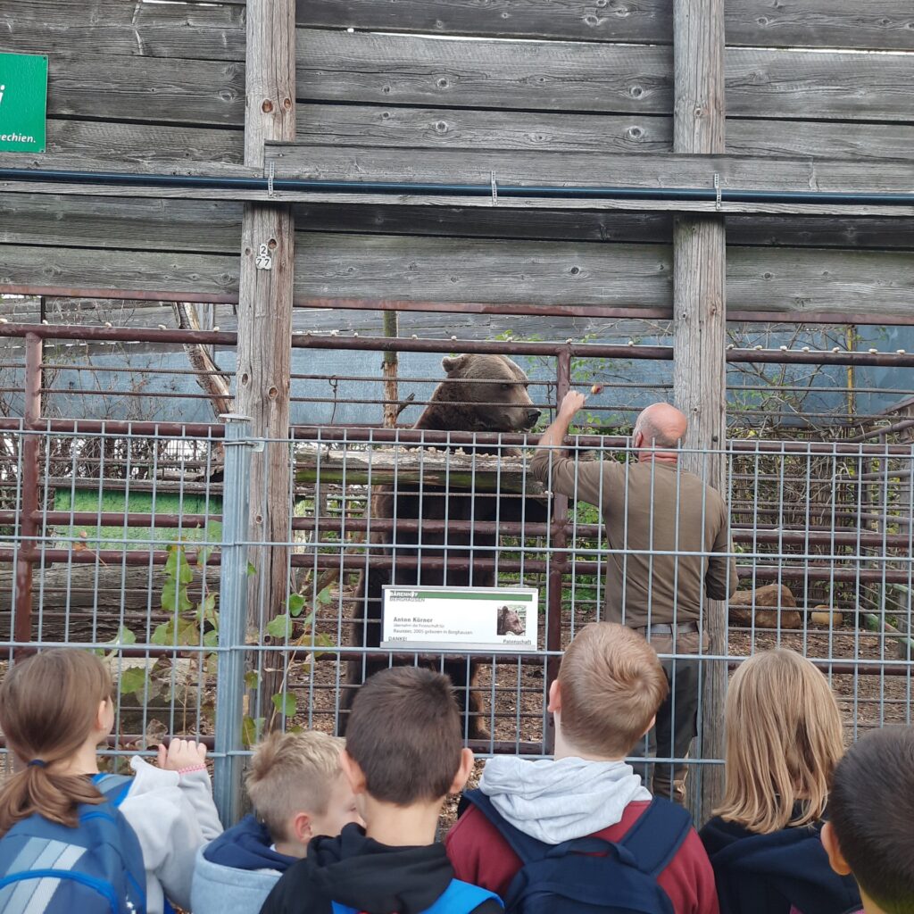 Učenci prve triade POŠ Sp. Kungota so se odpravili v Avstrijo, natančneje v azil za medvede, kjer omogočajo medvedom varno in brezskrbno življenje. V azilu nastanjenim medvedom je namreč skupno, da so bili v preteklosti v ujetništvu ljudi, ki so jih izkoriščali kot cirkuške medvede, za medvedje boje… Prijazna lastnica je povedala veliko zanimivega, medvedi so navduševali s svojim sodelovanje z oskrbnikom. Kako spretno oluščijo arašid! V azilu imajo tudi veliko drugih živali, ki so obisk z veseljem sprejele. Radovedno so gledali drug drugega.