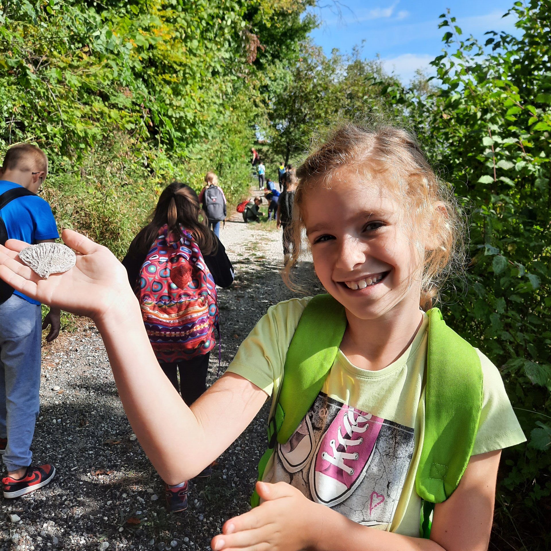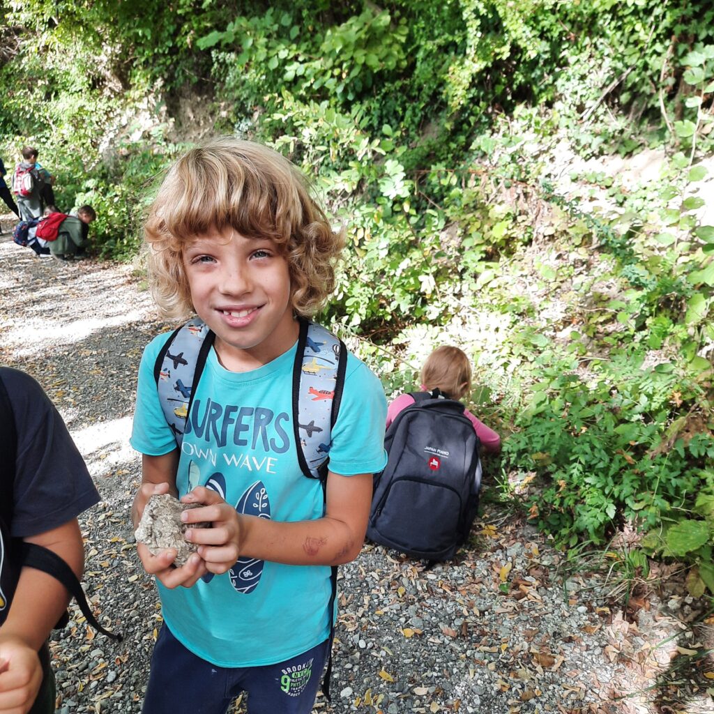 Naravoslovni dan so nadaljevali z obiskom gospoda Jožeta Haliča, ki ima zanimivo zbirko fosilov. Njegova razlaga je učence zelo navdušila, v iskanju fosilov so se preizkusili tudi sami. Veliko so jih našli na poti do Plačkega stolpa. Na vrhu je ostalo ravno dovolj časa za sproščeno igro in prijeten zaključek potepanja.