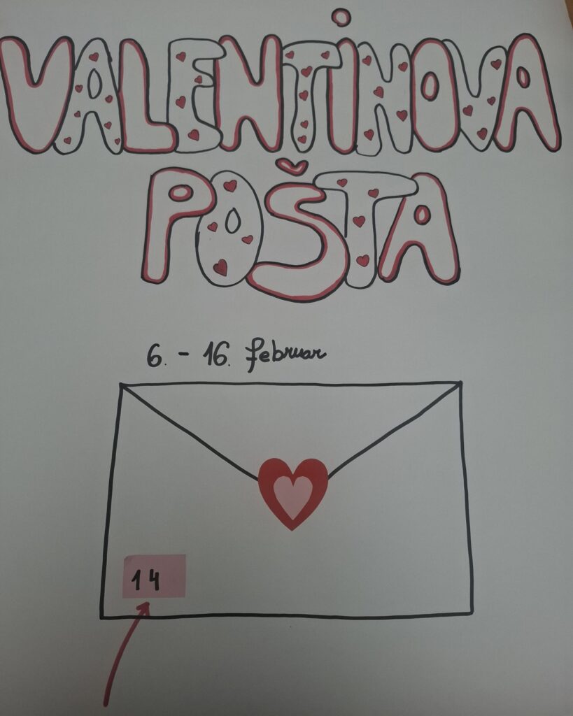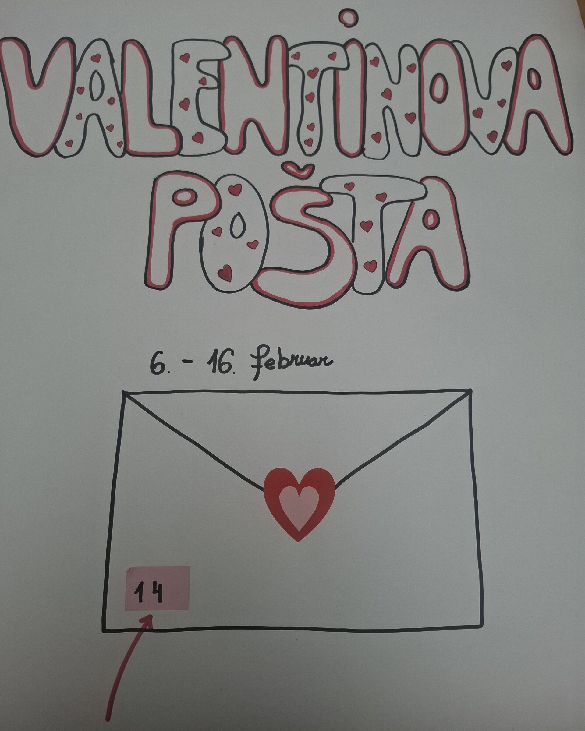 Po šoli so se sprehajale valentinove poštarke, naše devetošolke, ki so raznašale valentinova sporočilca, v katerih so bile skrivnostne, simpatične ali zabavne misli. Nekateri prejemniki so z rahlo rdečico na obrazih sprejemali sporočilca. Le kdo ne bi bil vesel prijazne besede ali drobnega sporočila simpatije?